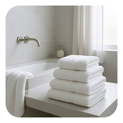 Hanging thick, hotel-quality hand towels is a quick and easy way to give your bathroom a luxurious feel that appeals to many buyers. Choose clean, white towels for a spa-like vibe, go for textured options, or bold-colored, patterned ones for a pop of fun and personality. If you're staging the bathroom and have extra counter space, you can also place a neatly folded pile of towels on the vanity or side of the bath. When showing your home to prospective buyers, it’s also a great idea to keep new towels only for display. Pack them away between showings and put them back just before another buyer arrives.